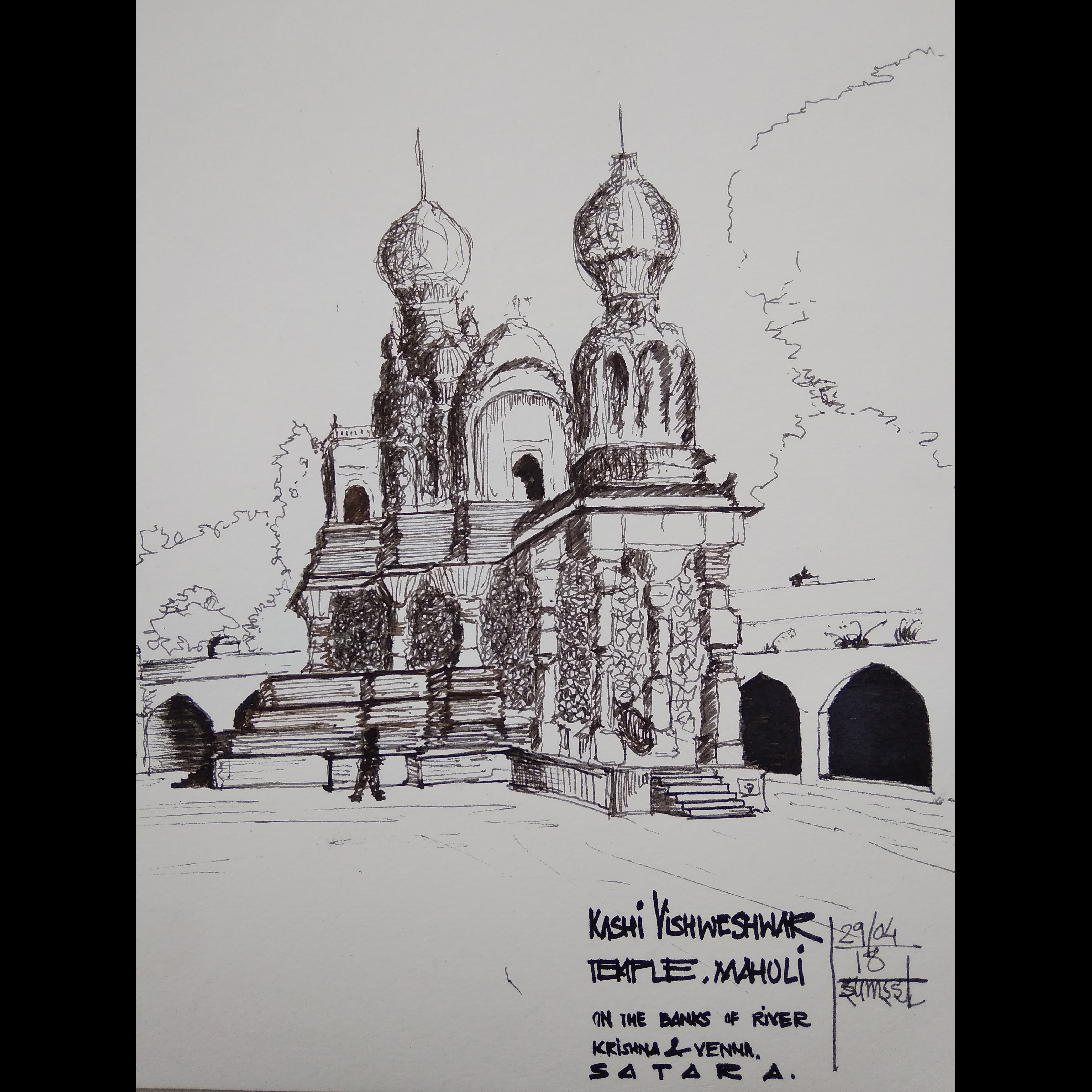 Sketching the Kashi Vishweshwar Temple in Satara felt like witnessing a stage change in time. The temple stands as a transition—between past and present, ritual and rhythm, stone and belief.